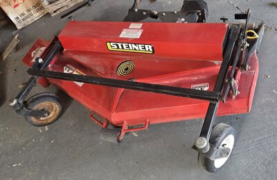 USED STEINER 6' MOWER DECK, MD472, FAIR CONDITION, PAINT IS FAIR, TAG #ST-74613. SHARPENED BLADES, TWO NEW SPINDLES!ITS ALMOST SPRING...