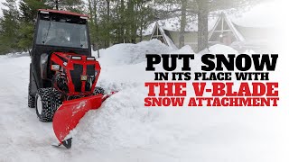 You didn’t think we’d let a little hard work get in our way? With the STEINER® V-Blade, mother nature plays by your rules. Electro-hydraulic blade-wing angling lets you switch from V-blade to inverted scoop or straight blade—on the fly, which makes it perfect for snow removal and even landscaping projects.