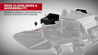 The AirFX™ mower deck attachment is engineered with features that deliver the durability and performance you’ve come to expect from STEINER®. With a deep-deck, bullnose design and patented Air-Gap™ baffle system, the AirFX™ mower deck creates a vacuum that lifts the grass for a superior quality of cut. The extra large discharge allows for ideal airflow and a cleaner deck. A hydraulic lift raises and lowers the deck from the operator’s seat for height of cut adjustments and transport, and an 80-degree hydraulic flip up allows for improved cleaning and maintenance.