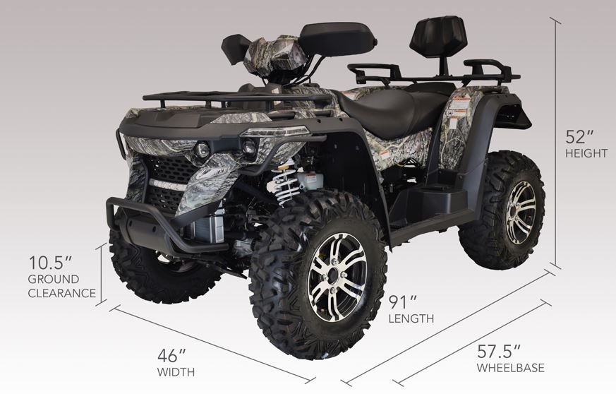 The rugged and powerful Massimo MSA 550L is an ATV designed for the toughest outdoor adventurers. With a single cylinder 4-stroke engine and 493cc displacement, it packs 33 horsepower and can reach speeds of up to 49mph. The 4WD system, along with its 10.5 inches of ground clearance and 25 inch tires, allows it to tackle any terrain with ease. The MSA 550L also features a 374lb load capacity and 1200lb towing capacity, making it the perfect companion for heavy-duty tasks. With Forward, Neutral, and Reverse gears, it offers ultimate control and maneuverability. Get ready to conquer the outdoors with the Massimo MSA 550L.