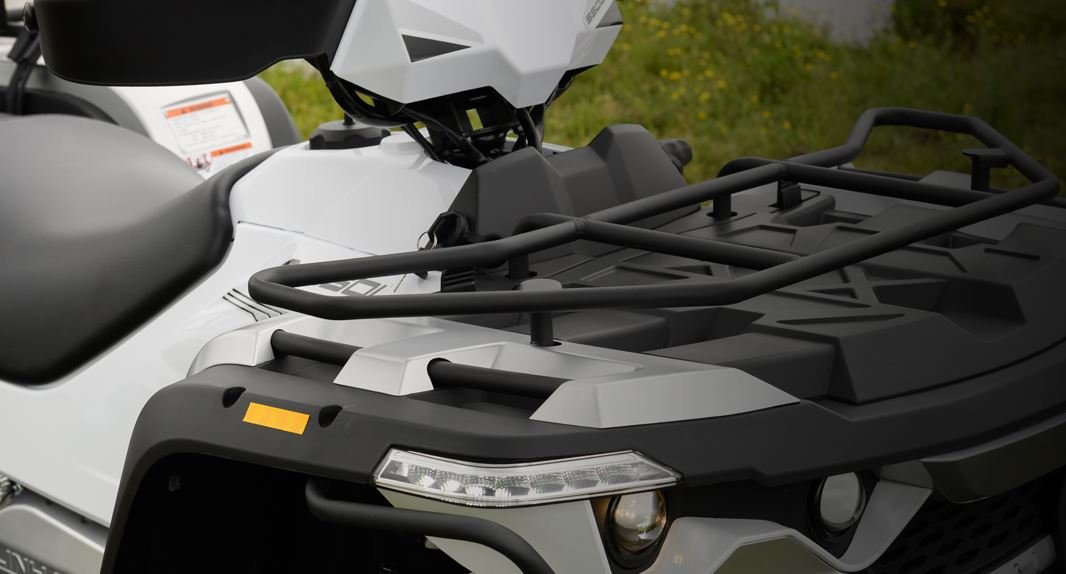 STANDARD FEATURES • 493cc 32 HP EFI 4 stroke engine • On demand 4WD with 25 in. AT tires • Electric Power Steering • 3,000 lb Winch • Passenger Backrest • LED Lights • Front Bumper • Hand Guards